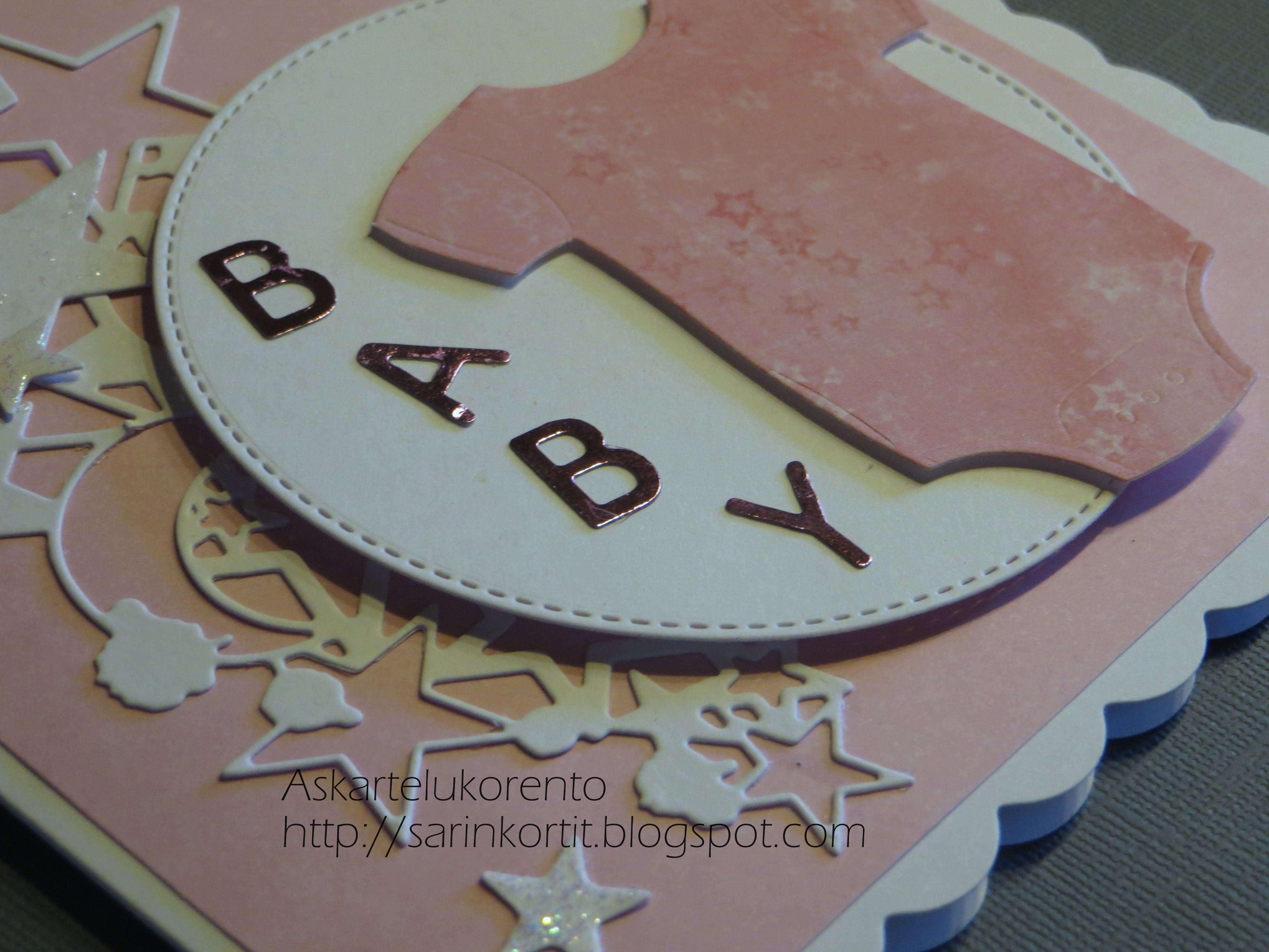 Tämän kortin tein tilauksesta baby shower -kutsuille. Idean korttiin sain Nurkkaanajetulta.